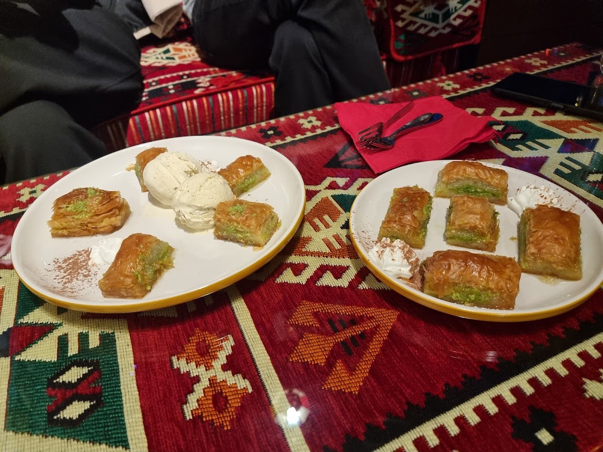 One of the highlights of Tarboush is its diverse menu, filled with both traditional and modern takes on Middle Eastern cuisine. Guests often start with mezze favorites like humus with pita bread, grape leaves, or crispy samosas, perfect for sharing. For something heartier, the mixed grill platter or the aromatic lamb tagine always leave a lasting impression. Vegetarian and vegan guests won’t feel left out either, with wholesome dishes such as falafel wraps, batata hara, and vegetable tagine. And if you’re craving something sweet, baklava and kunefe pair beautifully with a cup of rich Turkish coffee or hibiscus tea.